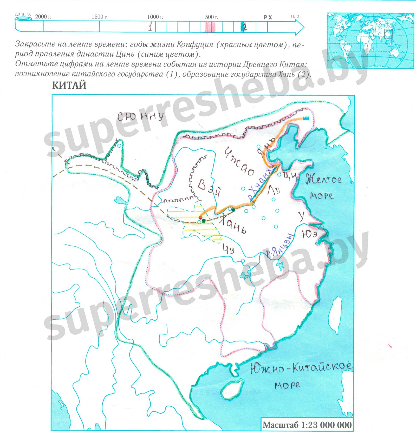 1. Подпишите названия: а) морей, которые омывают Китай с востока; б) царств, существовавших до образования единого государства; в) китайское название «Желтой реки» и подчеркните его синей линией; г) второй крупнейшей реки Китая; д) кочевников, для защиты от которых была построена Великая Китайская стена.